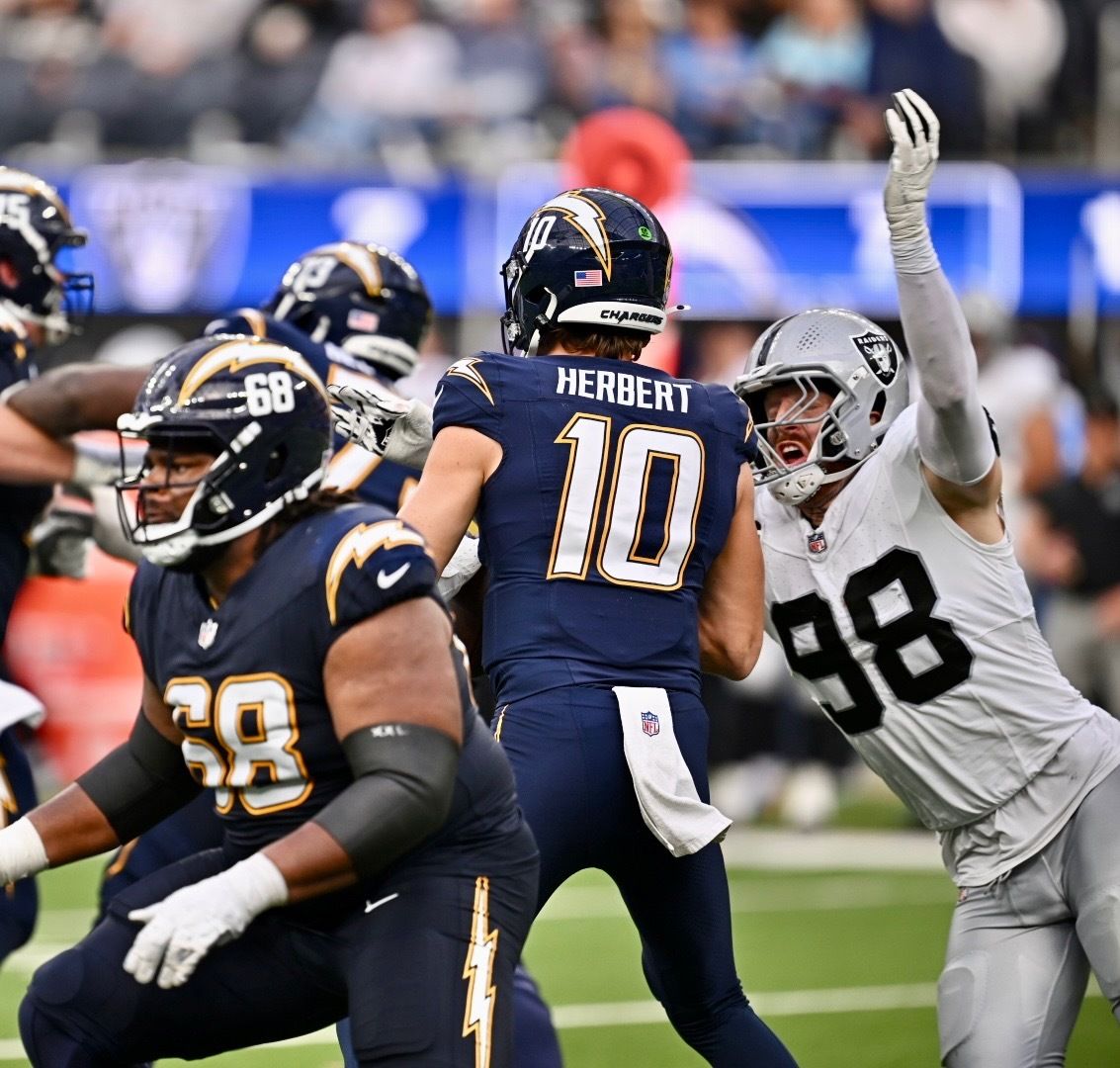 So far, Charles Grant has played just one snap. But against the Chargers last week, we finally got a real look at Caleb Rogers, who logged 17 snaps after the staff decided to rotate him with Antonio Mafi at right guard. In that limited action, Rogers allowed just one pressure, zero sacks, and no QB hits. It’s a small sample size, but he earned a 67.1 overall grade from PFF, making him the highest-graded Raiders offensive lineman of the week.