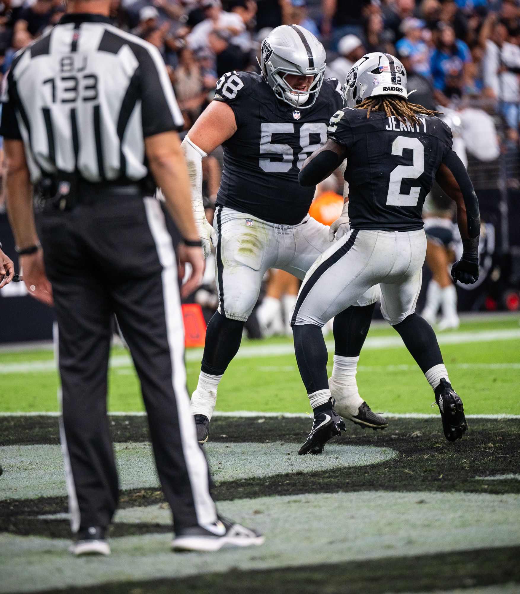 By now, you have seen the phenomenal photos we’ve been using in many of our newsletters. They’re some of the best shots you’ll find of your favorite team, captured through the lens of our friend Arnie Bazemore of Fanshotz.com. Every Friday, we’ll feature Arnie’s favorite Raiders shot of the week that he captures at practice or on game day. This week, we’re featuring a shot Arnie snagged of Maxx Crosby celebrating a third-down stop that forced the Titans into another punt in their 20-10 victory over Tennessee last Sunday. Check out his work at his site linked above and reach out if you’re interested in working with him. He’s a great guy and has been so supportive of me over the years when I was at NBC here in Vegas, and he’s come along for the ride with Silver & Black Sports Network, too.