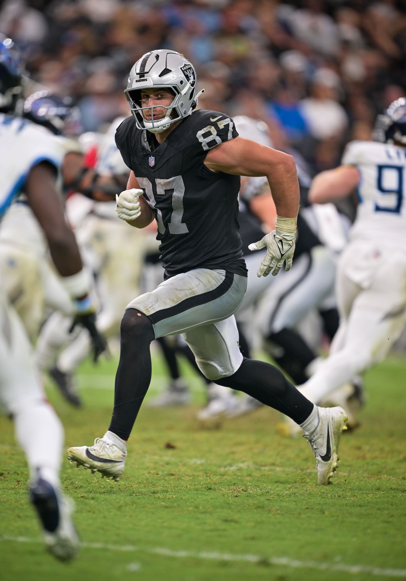 This week, we’re featuring a shot Arnie snagged of Michael Mayer running a route in the Titans game. Over the last week or so, I’ve been wondering what the future holds for Mayer. He had a strong finish to the year, and I think he and Brock have the potential to be the best tight end room in the league. Whoever the next coach is will play a massive role in determining if that ever comes to fruition. Given the rise in multiple tight end sets around the league in recent years, I think he could be a solid asset for the Raiders behind Brock if they land the right coach.